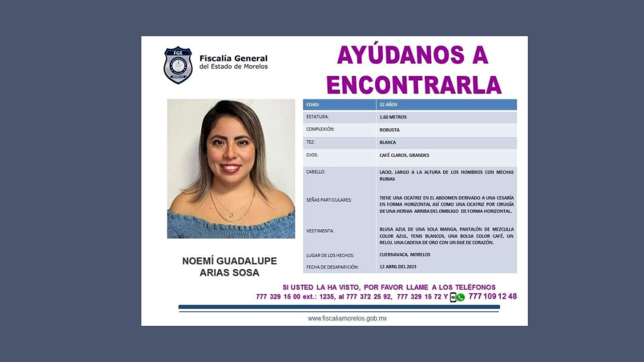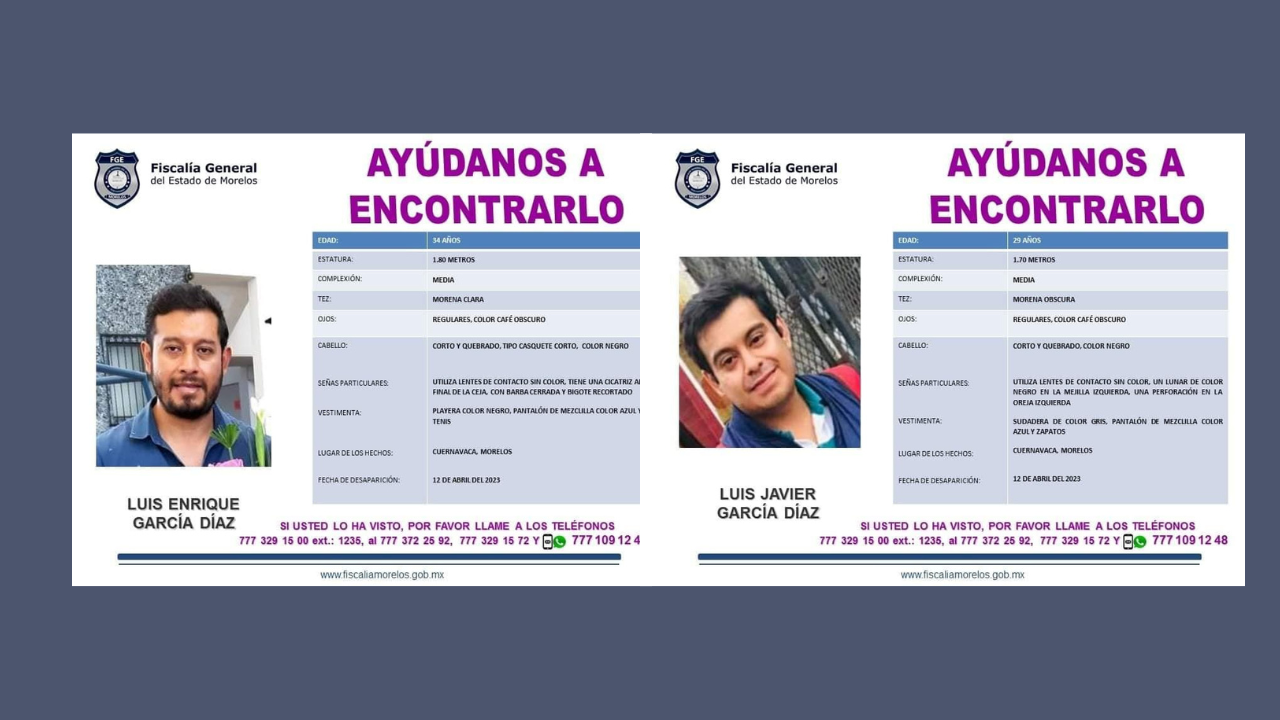 El pasado miércoles tres jóvenes de Cuernavaca desaparecieron regresando de Ciudad de México (CDMX), Noemi Guadalupe Arias Sosa, de 32 años, Luis Enrique García Díaz, de 34 y pareja de Guadalupe, y su hermano Luis Javier García Diaz, de 29, salieron de Cuernavaca, desde la colonia Lienzo Charro, con dirección hacia la capital para asistir a una consulta en la óptica “Berlín”.