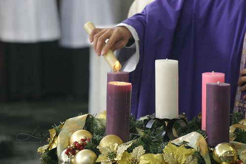 Regularmente se colocan tres velas o cirios morados que cuyo significado en el tiempo de espera y la conversión.