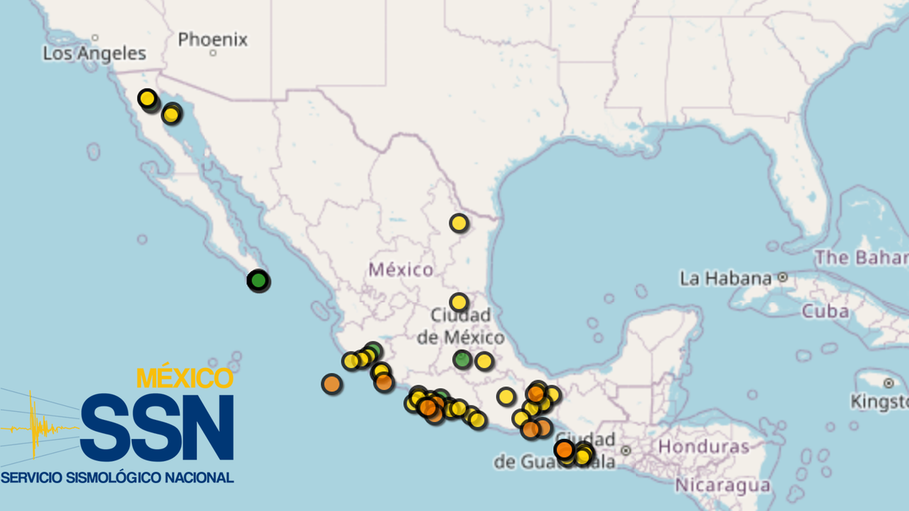El Servicio Sismológico Nacional (SSN) informó que, en las últimas 24 horas, se registraron un total de 87 movimientos telúricos con epicentros en doce estados del país.