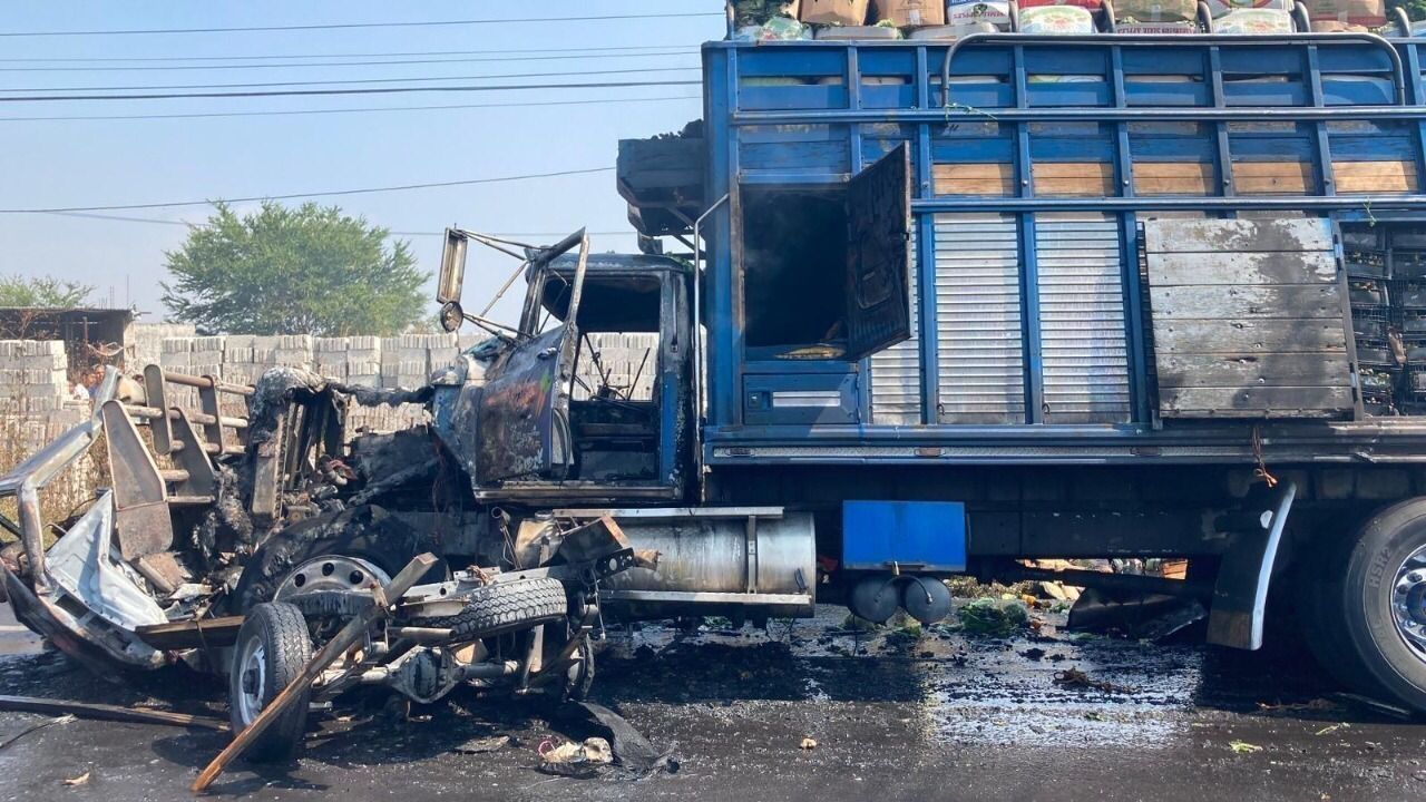 Uno de los choferes no logró salir de su vehículo y quedó atrapado entre las llamas del accidente.