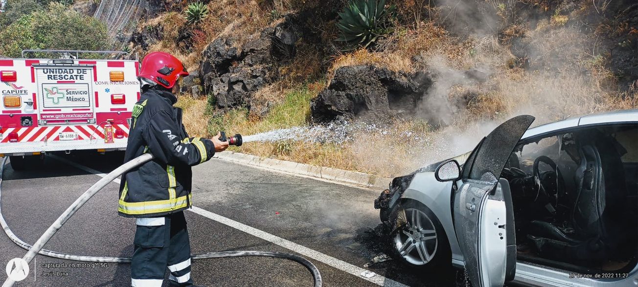La mañana de este martes se registró una falla mecánico en un automóvil Peugeot, provocando el incendio del mismo a la altura del kilómetro 59 de la autopista México - Cuernavaca.