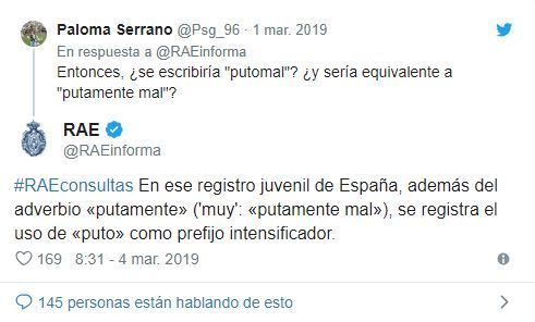 Recientemente la Real Academia Española (RAE) indicó a través de su cuenta oficial de Twitter que el uso de la palabra “puto” en el vocabulario como prefijo intensificador es correcto, es decir, cuando se quiere poner énfasis en algo.