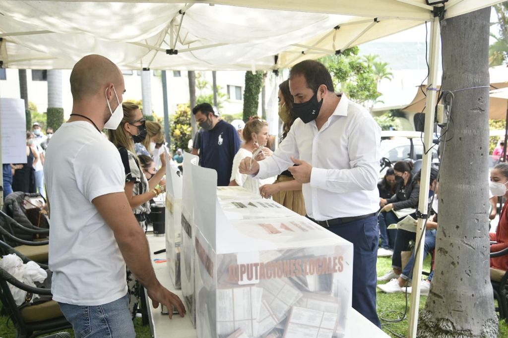 El gobernador del Estado de Morelos, Cuauhtémoc Blanco Bravo, emitió su voto esta mañana en la casilla de la Sección 0380, ubicada en la zona de Tabachines, del municipio de Cuernavaca.