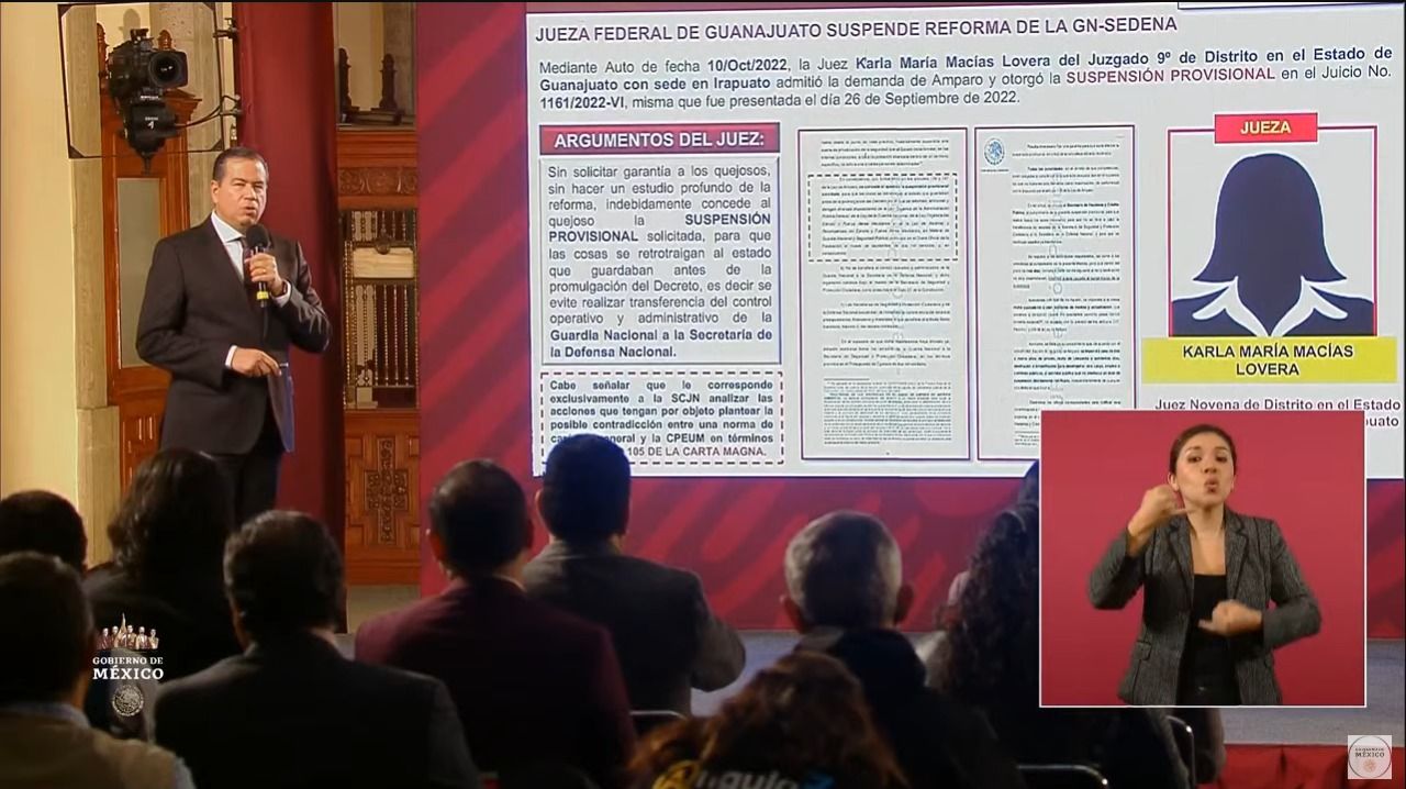 El subsecretario recordó que anteriormente la jueza federal ya había acreditado una suspensión provisional del Decreto de Reforma Militar, el cual había sido impugnado por un Tribunal Colegiado que quedó sin efecto; sin embargo la jueza dictó una nueva resolución para suspenderla definitivamente.