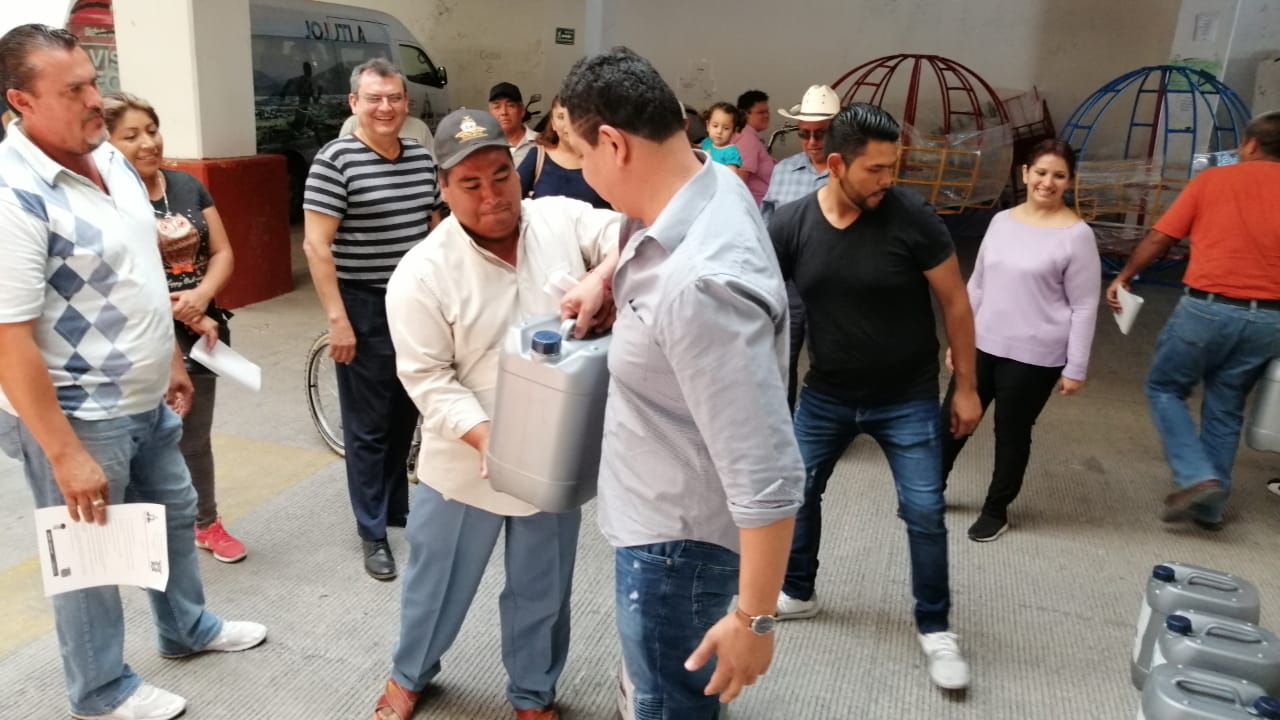 El presidente municipal de Jojutla, Juan Ángel Flores, entregó este día gel antibacterial a Ayudantes Municipales con la finalidad de que se distribuyan en las 19 colonias y comunidades de Jojutla, para fortalecer las acciones contra el Covid-19.