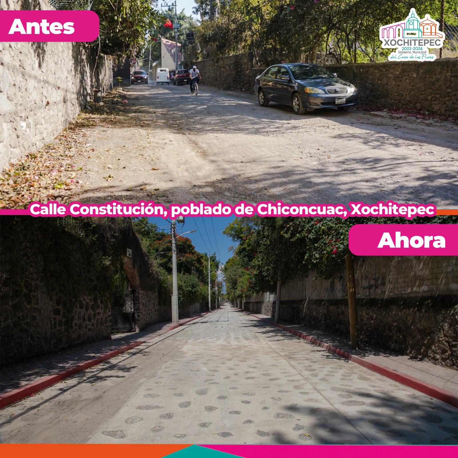 El alcalde de Xochitepec, Roberto “Chalo” Flores, inauguró la renovación de la calle Constitución en Chiconcuac, una vía que ahora cuenta con empedrado, iluminación y banquetas señalizadas para brindar mayor seguridad y comodidad a la comunidad.