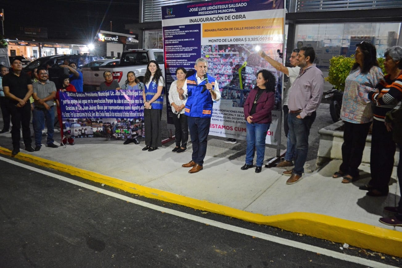 El alcalde de Cuernavaca, José Luis Urióstegui Salgado, entregó este miércoles la rehabilitación integral de la calle Pedro de Alvarado, en la colonia Lomas de Cortés.