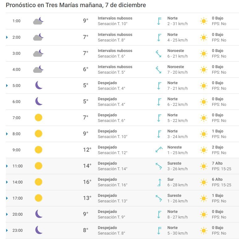 Durante las madrugadas y amaneceres de este fin de semana se esperan los siguientes valores: