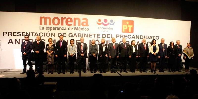 El precandidato por la coalición “Juntos Haremos Historia” (MORENA, PT, PES), Andrés Manuel López Obrador, ya anunció quienes integrarían su gabinete en caso de ganar las elecciones de 2018.