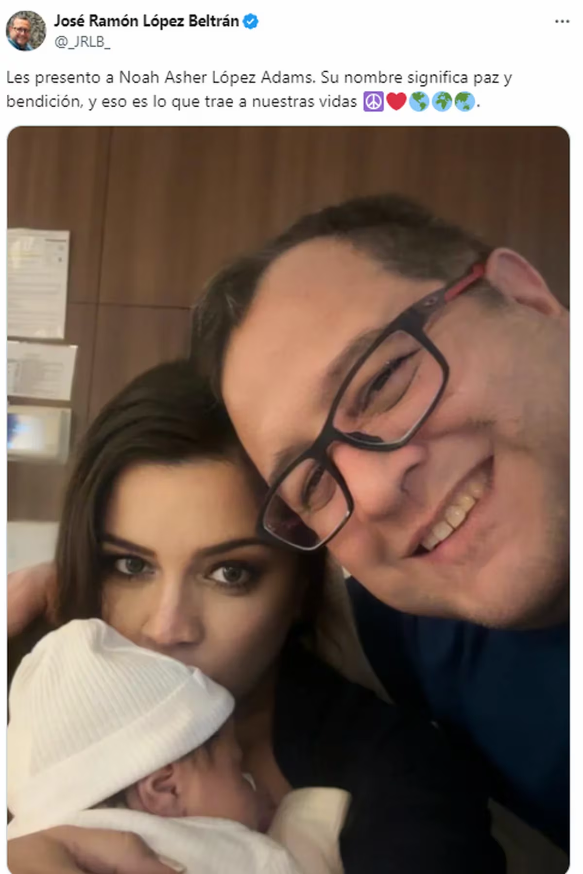 “Les presento a Noah Asher López Adams. Su nombre significa paz y bendición, y eso es lo que trae a nuestras vidas”.