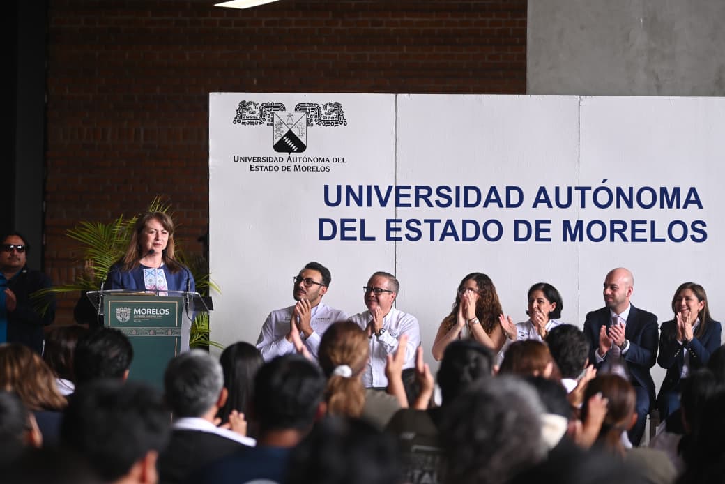 Por su parte, la rectora Viridiana Aydeé León Hernández expresó su reconocimiento a la mandataria estatal por el respaldo a la Máxima Casa de Estudios morelense, y destacó que el compromiso con la educación se refleja en la atención permanente al tema financiero. A su vez, Mario Cortés Montes, secretario general del SITUAEM, resaltó el liderazgo de la Gobernadora.