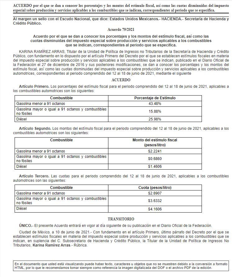 De acuerdo con la publicación en el Diario Oficial de la Federación, la Secretaría de Hacienda y Crédito Público anunció un aumento en el estímulo fiscal al Impuesto Especial Sobre Producción y Servicios (IEPS).