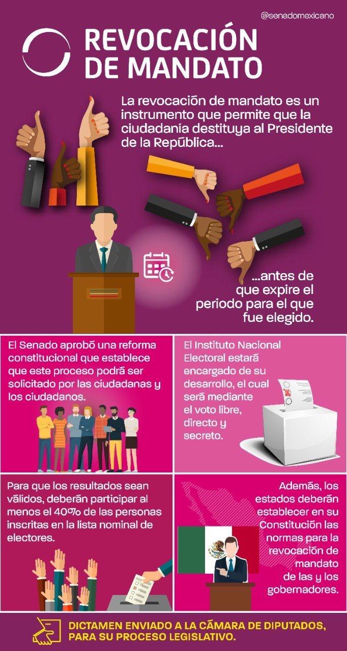 Tal y como se especulaba, el Senado de la República aprobó con 98 votos a favor, 22 en contra por parte del PAN y una abstención, la Reforma Constitucional de Revocación de Mandato, la cual establece que el presidente o los gobernadores pueden ser separados de su cargo mediante una consulta popular.