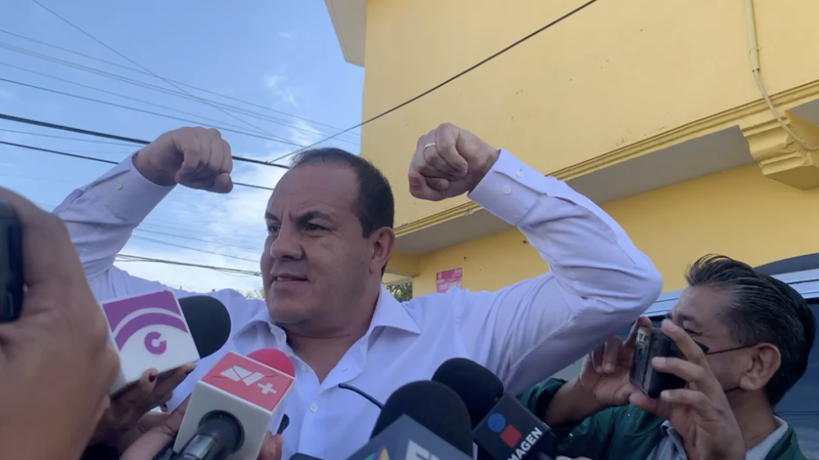 “Aquí estoy, he podido contra más” comentó el mandatario, mostrando sus músculos en símbolo de fortaleza, cuando se le preguntó si consideraría que se trata de una lucha difícil contra 15 diputados que han formado un bloque en contra de los intereses de los morelenses.