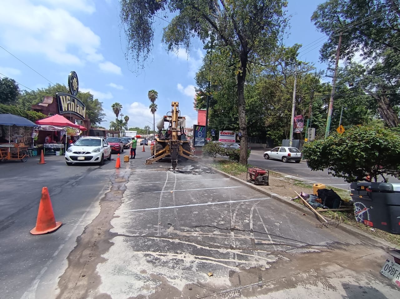 Los primeros trabajos en la zona ya comenzaron con el trazo y nivelación manual del terreno. Posteriormente, se realizaron cortes con disco en elementos de concreto hidráulico y asfáltico, para dar paso a la demolición del pavimento existente.