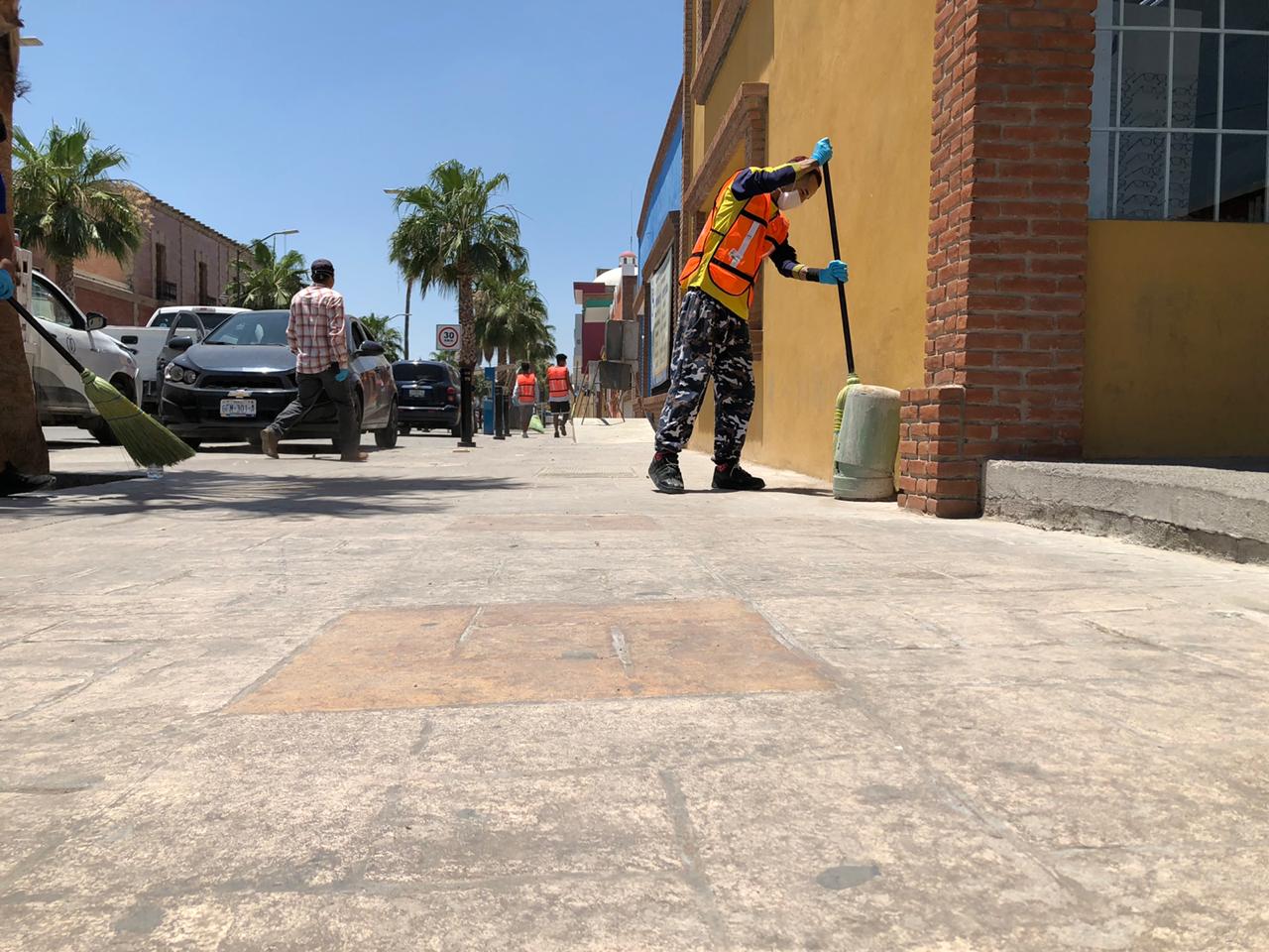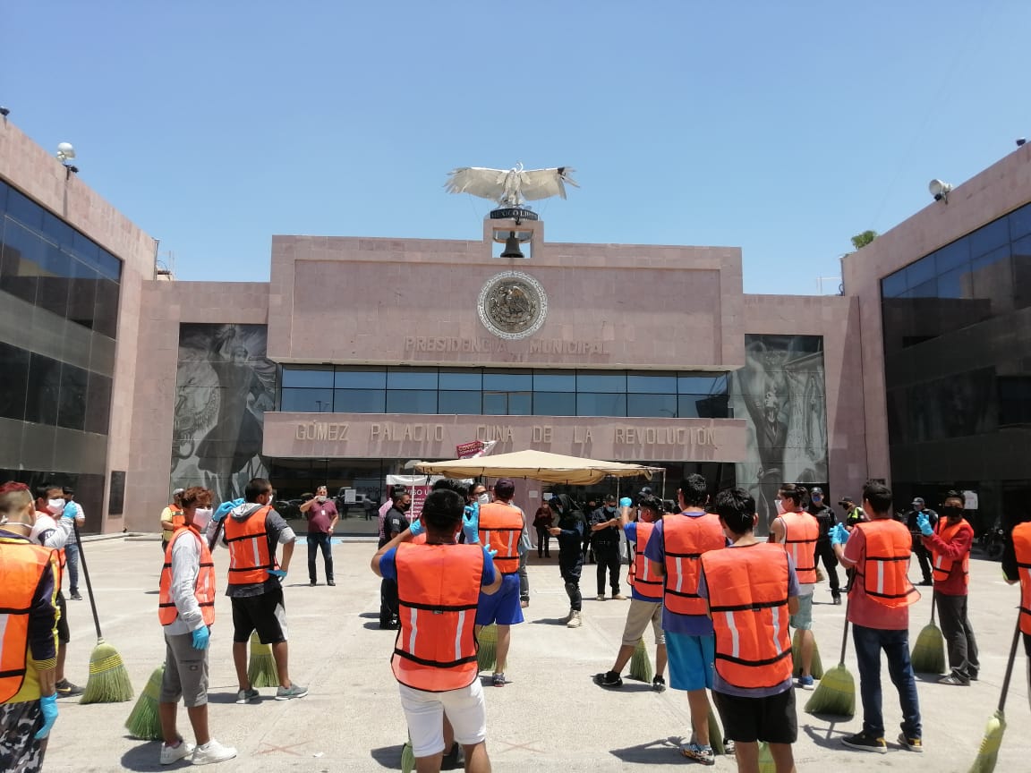 El trabajo de limpieza fue supervisado por la policía municipal, quienes les entregaron cubrebocas y caretas a los infractores para su protección, además de escobas para poder cumplir con su labor.