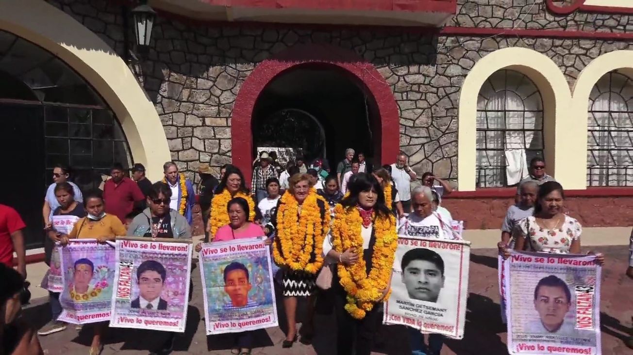 En la entrada fueron recibidos con collares de flores por parte de los Padres de los 43, quienes portaban las fotografías de sus hijos desaparecidos, además de estudiantes normalistas y el abogado Vidulfo Rosales Sierra.
