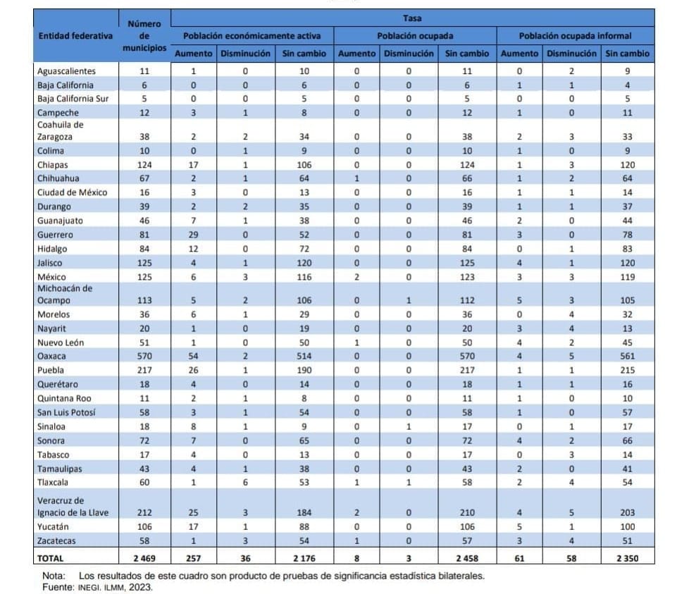 El Instituto Nacional de Estadística y Geografía (INEGI) ha dado a conocer los Indicadores Laborales para los Municipios de México (ILMM) correspondientes al año 2023, proporcionando un análisis detallado del mercado laboral en los 2 mil 469 municipios del país. Estos indicadores, publicados anualmente, ofrecen información valiosa sobre la situación laboral del primer trimestre de cada año, con la primera edición remontándose a 2017.