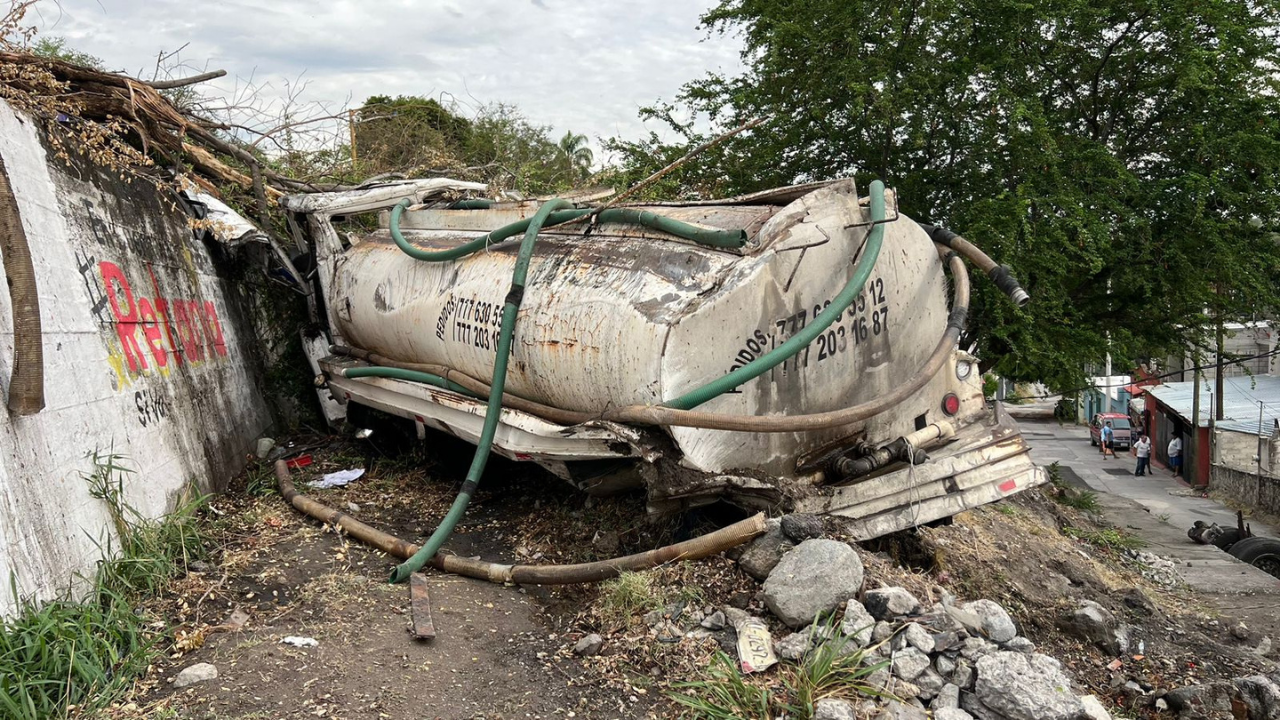 Dos operadores de la línea Futura habrían provocado la volcadura de una pipa de agua en el kilómetro 97 de la autopista México-Acapulco, en dirección al sur.