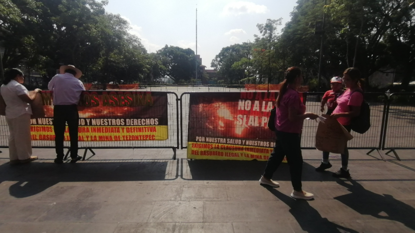 Vecinos de Jiutepec se manifestaron por el incendio en mina de Tezontepec, exigiendo el cierre y la creación de un parque público.