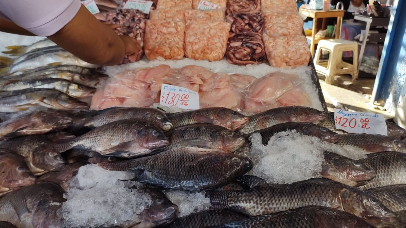 El kilo de mojarra chica cuesta entre 90 y 100 pesos, la mojarra grande se comercializa en 100 pesos, máximo 110 pesos dentro del ALM. El filete de pescado se encuentra en 130 pesos, mientras que el kilo de camarones sin cabeza cuesta 200 pesos.