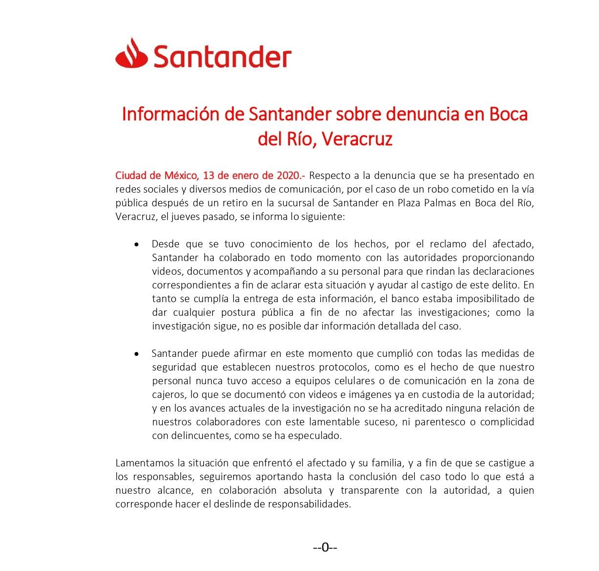 Tras las investigaciones y detención de presuntos responsables, la Fiscalía de Veracruz dijo que era probable que uno de los malhechores estuviera relacionado con la cajera, situación que desmintió el Banco Santander a través de un comunicado.