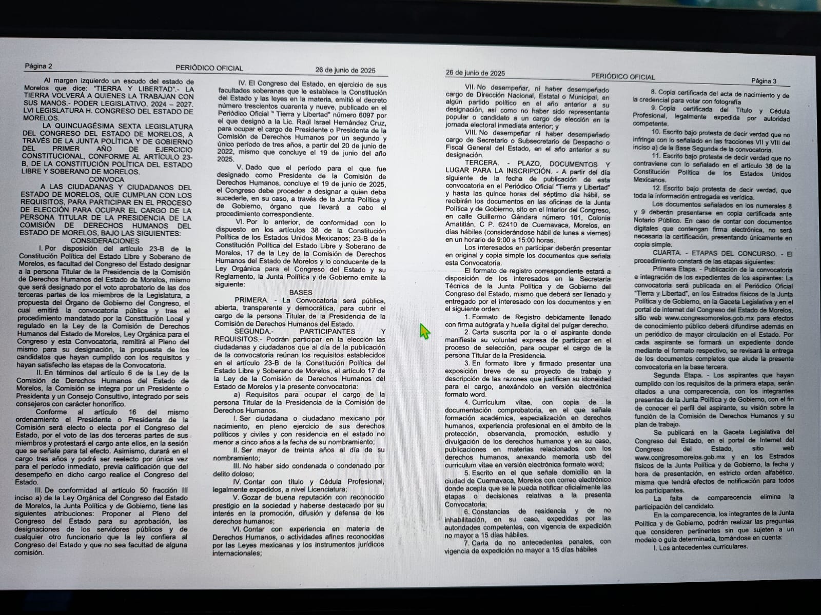 La Junta Política y de Gobierno del Congreso de Morelos emitió oficialmente la convocatoria para designar a la nueva persona titular de la Comisión de Derechos Humanos del Estado (CDHM).