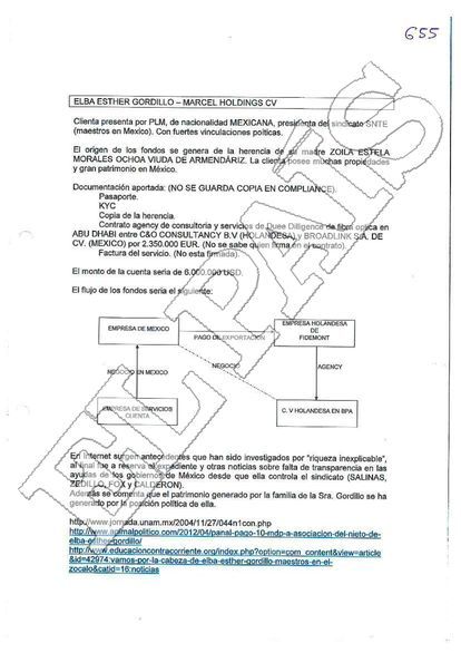 Cabe señalar que, Elba Esther trató de abrir la cuenta en la BPA tan sólo 10 meses antes de que fuera detenida en el Estado de México, en febrero de 2013, por desvío de fondos, fraude fiscal, delincuencia organizada y lavado de dinero. Además, fue acusada de saquear 120 millones de euros del sindicato más grande de Latinoamérica, el SNTE, el cual tiene 1.6 millones de agremiados.