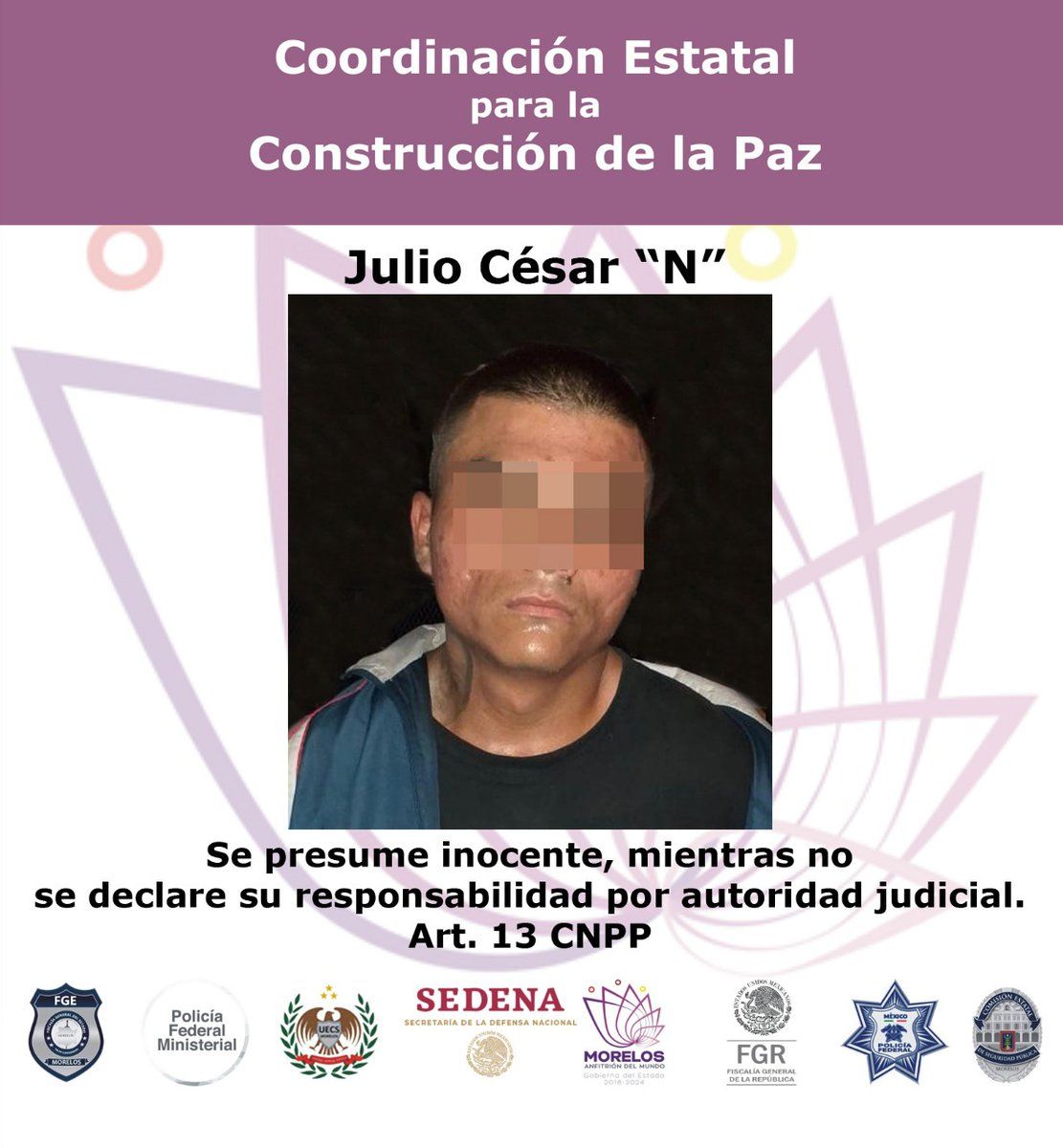 El tercer involucrado es identificado como Julio César “N” de 25 años de edad, detenido luego de estar presuntamente involucrado en el homicidio de un joven de 17 años de edad, en Temixco. Hechos ocurridos el 23 de abril en el estacionamiento de una tienda de autoservicio.