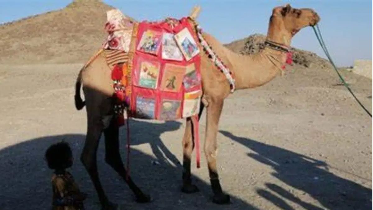 La directora de una escuela rural ubicada en pleno desierto de Baluchistán, Pakistán tuvo la ingeniosa idea de utilizar a un fiel amigo para agilizar el traslado de libros y material de estudio a cientos de niños que viven en aldeas separadas por las dunas.