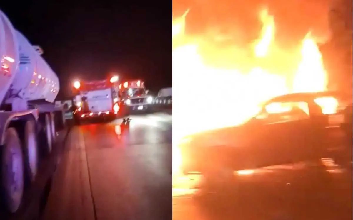 En algunos de los vídeos que circulan en redes sociales se puede ver unidades envueltas en llamas, así como la zona del accidente.