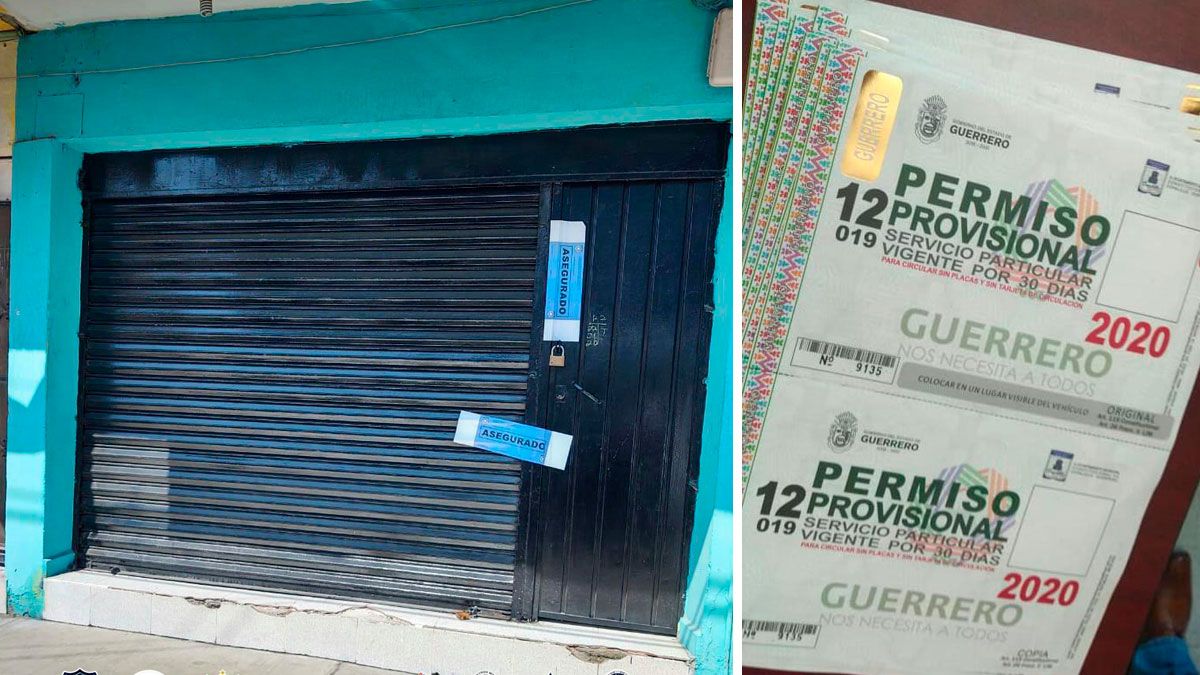 De los 21 locales identificados, seis de ellos habían sido desmantelados encontrándose vacíos, los 15 restantes fueron asegurados por la autoridad ministerial, realizando el aseguramiento de permisos provisionales para circular emitidos por el estado de Guerrero, licencias de conducir y tarjetas de circulación.