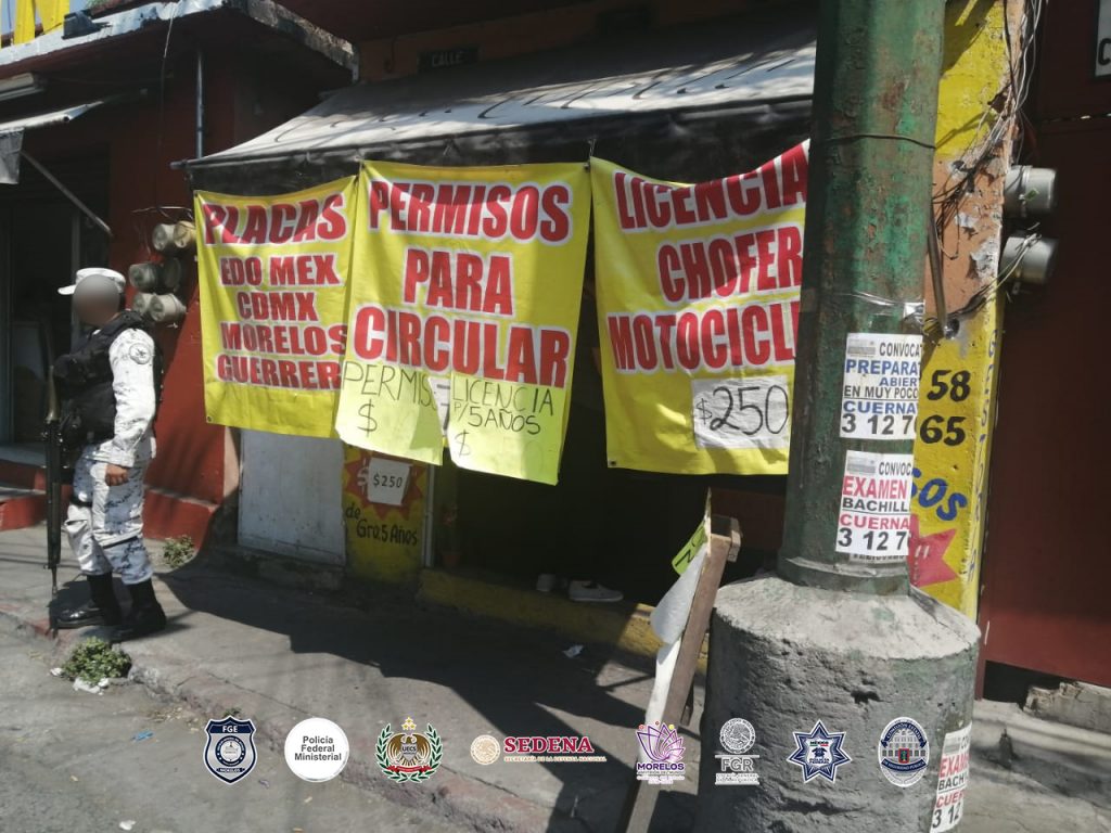 Catean 21 casas de gestoría vehicular en Cuernavaca por documentos falsos