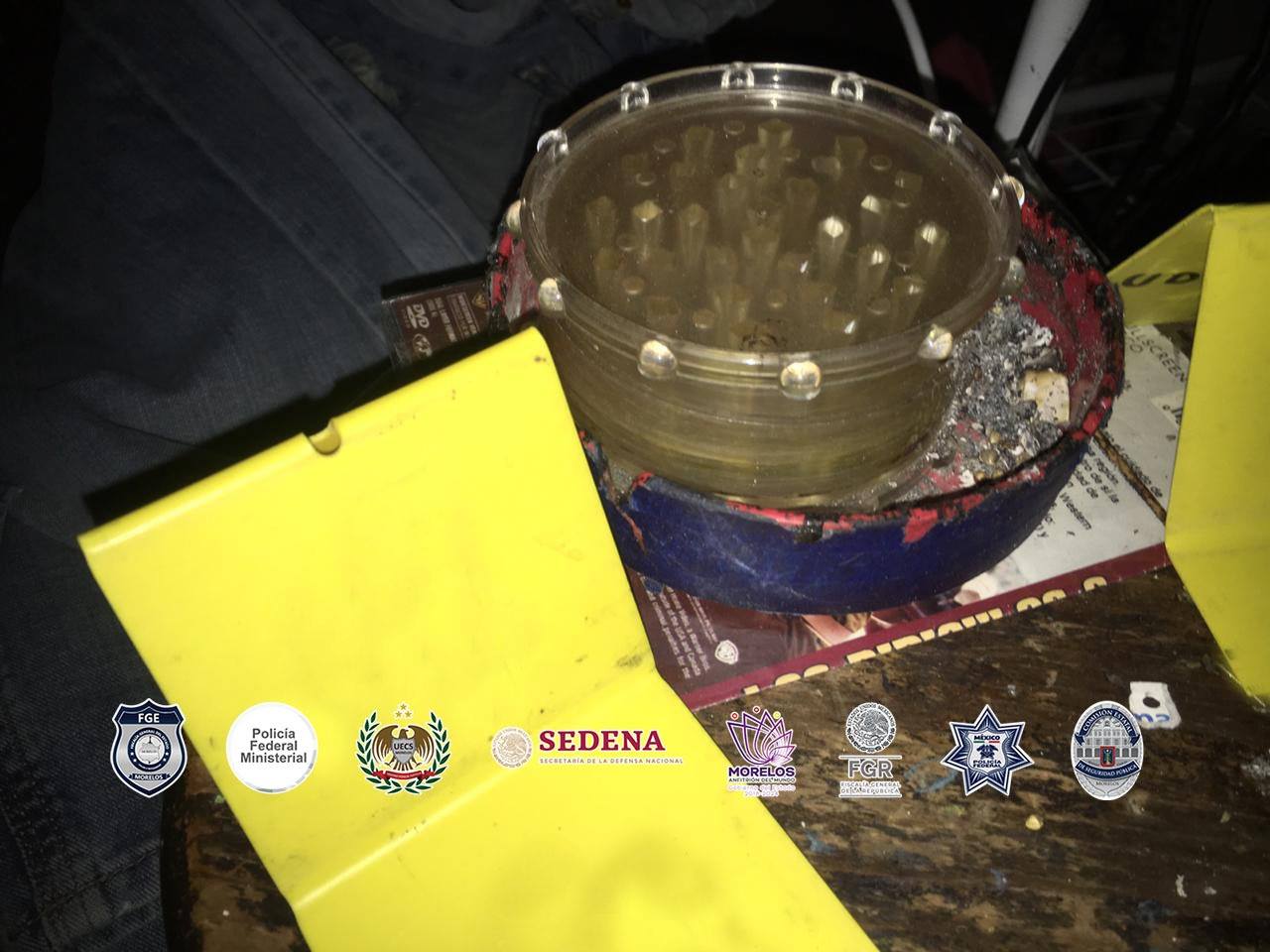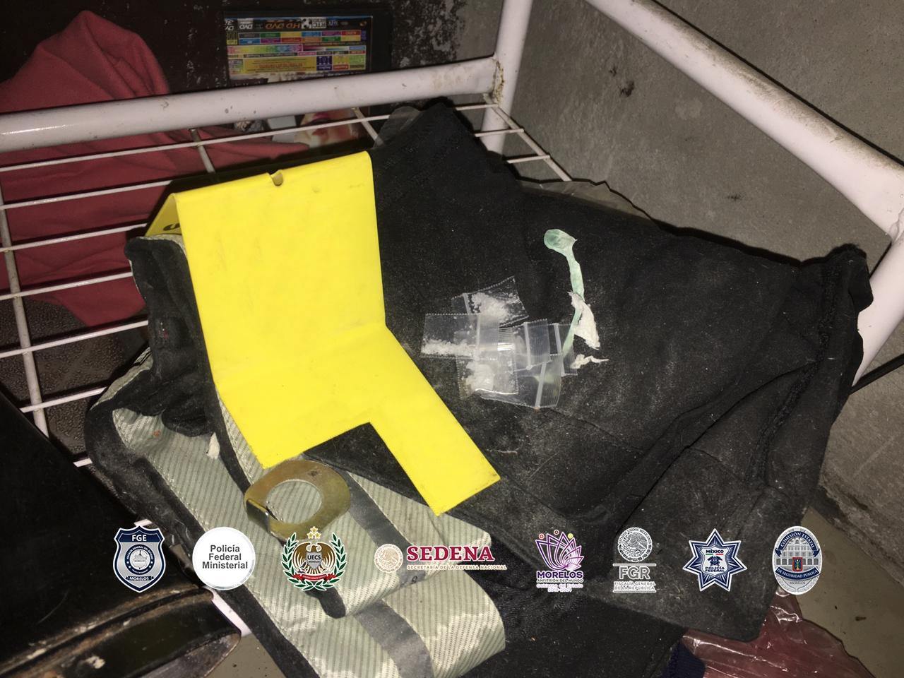 Al interior del inmueble se localizaron 6 macetas de marihuana, semillas de esta hierba y marihuana seca. Asimismo, se encontraron 6 bolsas de plástico transparente con una sustancia similar a la del cristal y cartuchos de distintos calibres.