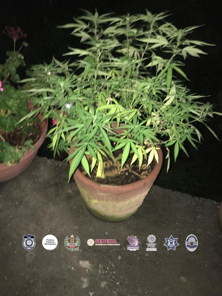 Derivado de una denuncia ante la Fiscalía Regional Metropolitana, elementos de esta corporación realizaron un cateo en un domicilio de Cuernavaca, donde encontraron macetas con presunta marihuana sembrada, por lo que procedieron a la detención del dueño.