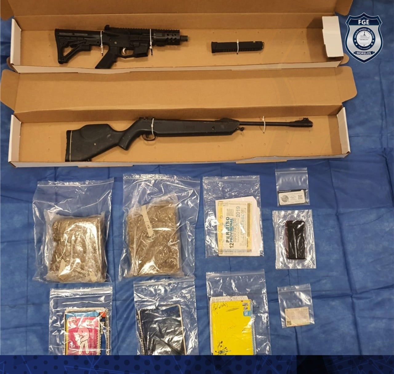Este fin de semana elementos del Grupo Fusión-UECS de la Fiscalía Antisecuestro, en coordinación con elementos de la Secretaría de Marina y la Comisión Estatal de Seguridad, ejecutaron una orden de cateo en un rancho ubicado en el municipio de Ayala, en donde realizaron la detención de cuatro adultos y un menor de edad, así como el aseguramiento de armas, droga, vehículos y equipos de telefonía.