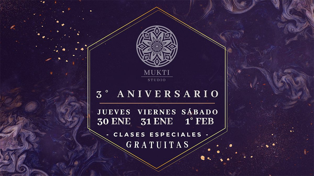 En Mukti Studio quieren celebrar contigo su tercer aniversario en donde a través de los años han impulsado este proyecto con esfuerzo, amor y dedicación para cada uno de sus alumnos.