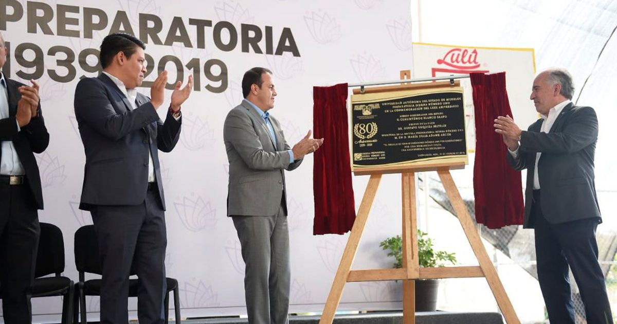 En el marco del 80 Aniversario de la Escuela Preparatoria Diurna número 1, Profesor Bernabé L. De Elías, ubicada en Cuernavaca, el gobernador del estado, Cuauhtémoc Blanco asistió a la ceremonia.