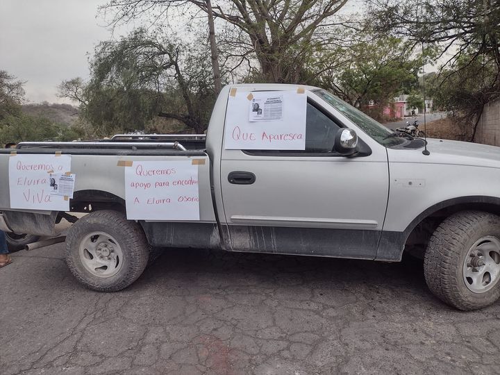 Amigos y familiares de Elvira Osorio Quintero, una mujer de 48 años de edad, quien se encuentra desaparecida desde el pasado 8 de marzo en la zona sur de Morelos, bloquearon la carretera Temilpa Viejo-San Rafael Zaragoza, a la altura de la Villa, para exigir su localización con vida.