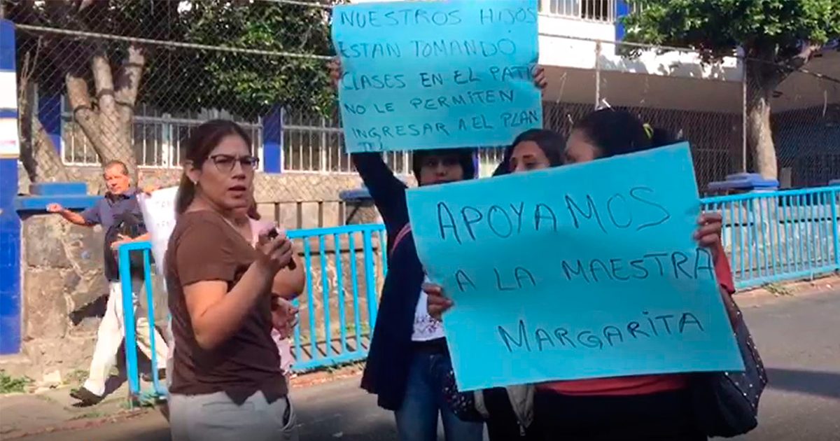 Un grupo de padres de familia cerró por más de tres horas la avenida Emiliano Zapata, frente a la escuela 18 de Marzo, del poblado de Tlaltenango en Cuernavaca, para exigir la permanencia de la maestra de sexto grado.