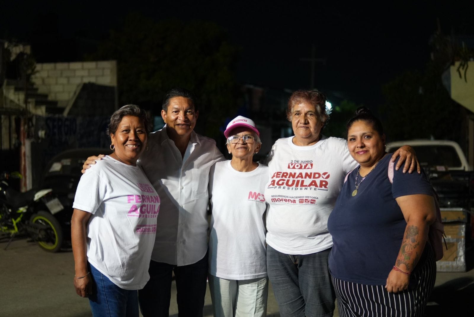 El candidato a la alcaldía de Emiliano Zapata, por la coalición Seguiremos Haciendo Historia (Morena, MAS, Nueva Alianza y PES), Fernando Aguilar Palma, visitó las colonias Tres de Mayo y Lomas del Copal, donde fue recibido al grito de "presidente, presidente" y "es un honor estar con el mejor", por las y los ciudadanos que reafirmaron la confianza en su proyecto de gobierno.
