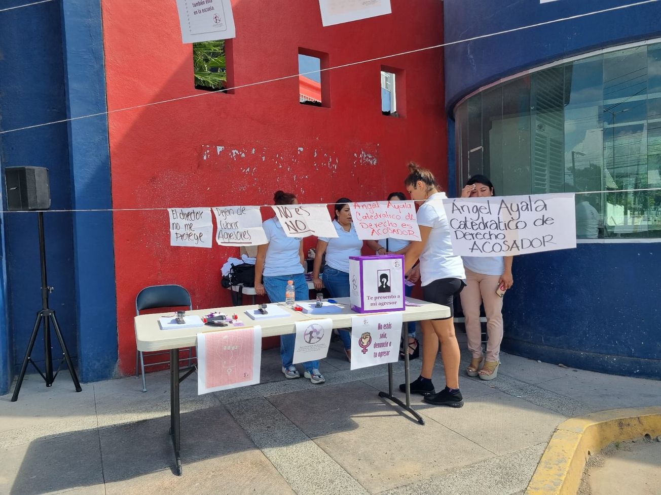 “Ángel Ayala, catedrático de Derecho, es Acosador”, “Tonatiuh eres un acosador”, “El director no me protege” y “deje de encubrir acosadores” se leía en el tendedero de denuncias.