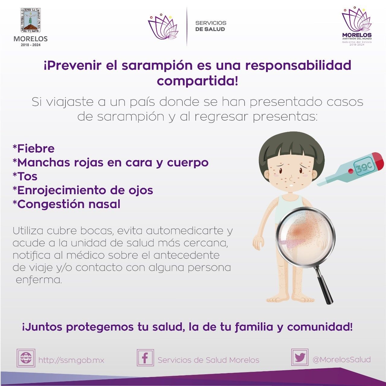 La Secretaría de Salud del Estado de Morelos emitió una serie de recomendaciones para evitar el sarampión. De acuerdo con titular de esta dependencia, Marco Cantú, esta enfermedad se caracteriza por una gran serie de síntomas: