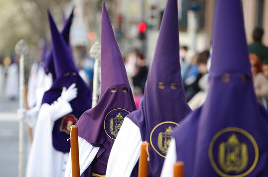 Estos sombreros altos de forma cónica son usados por los cofrades que procesionan en la Semana Santa de España, pero fuera de este país pareciera que quien los lleva puesto pertenece al Ku Klux Klan.