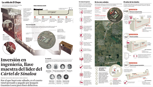 Cavar el túnel por el cual se fugó Joaquín El Chapo Guzmán del penal de máxima seguridad de El Altiplano, requirió la intervención de ingenieros y al menos dos meses de trabajo para remover 2 mil metros cúbicos de tierra, en 300 camiones de volteo.