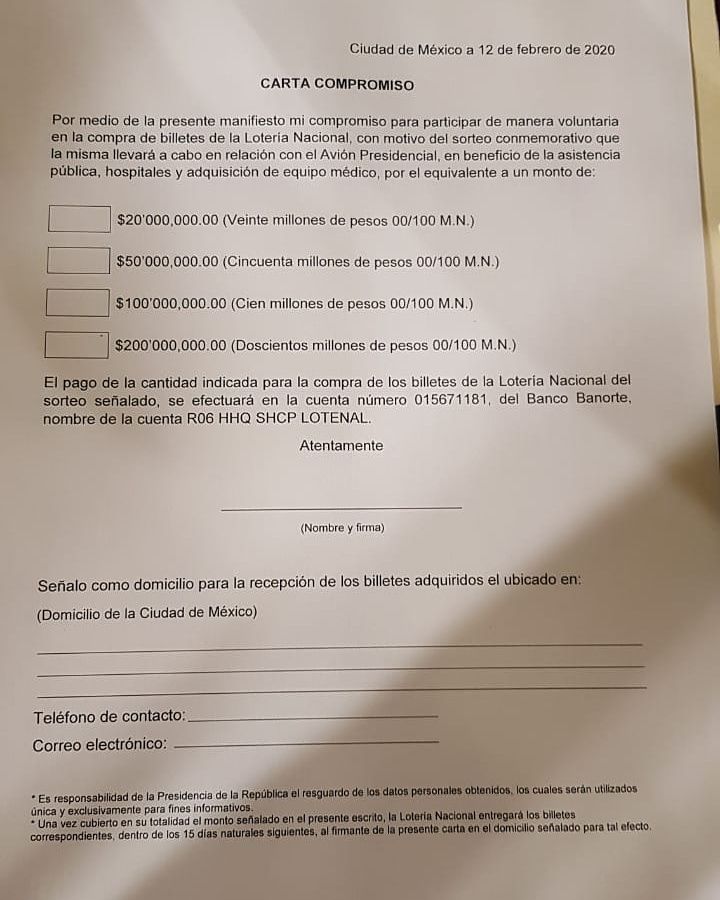 López Obrador agradeció la asistencia de los empresarios a dicha reunión, quienes reconocieron que la rifa es por “una causa justa”, con el fin de comprar equipos médicos para fortalecer la infraestructura de Salud en el país.