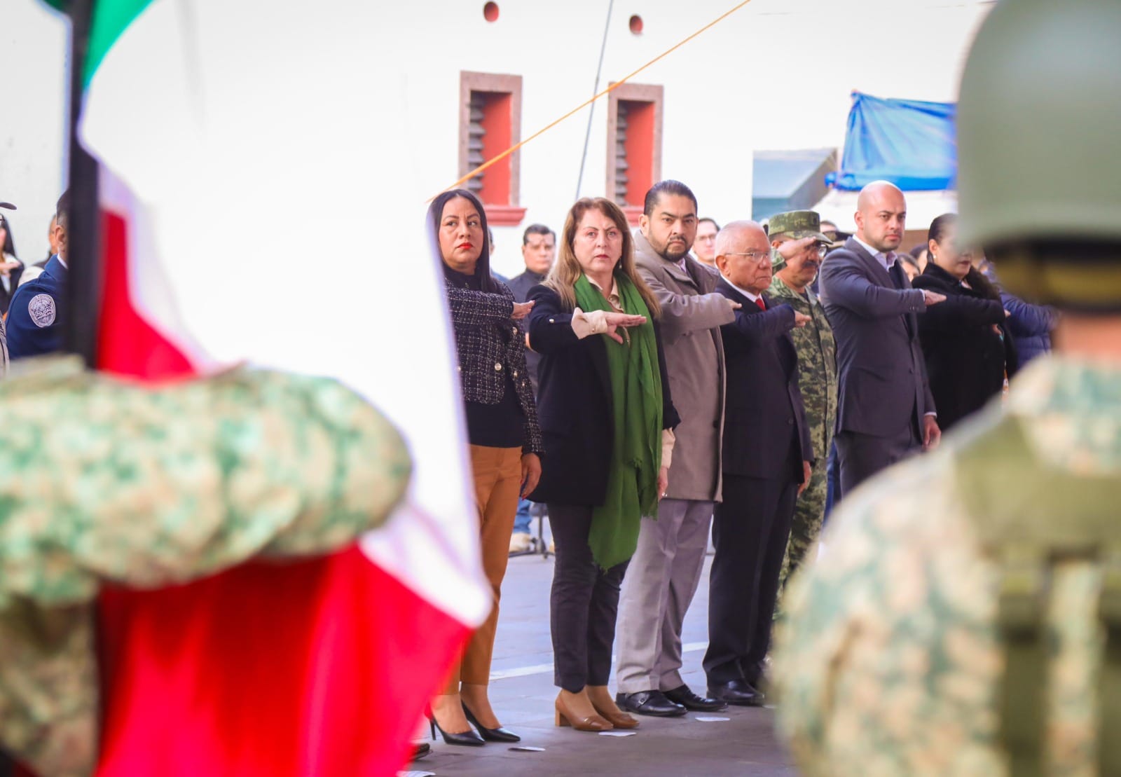 Cabe mencionar que, previo al encuentro con las y los representantes de los medios de comunicación, Margarita González Saravia realizó Honores a la Bandera, en la explanada del Museo Centro Cultural del Chinelo.