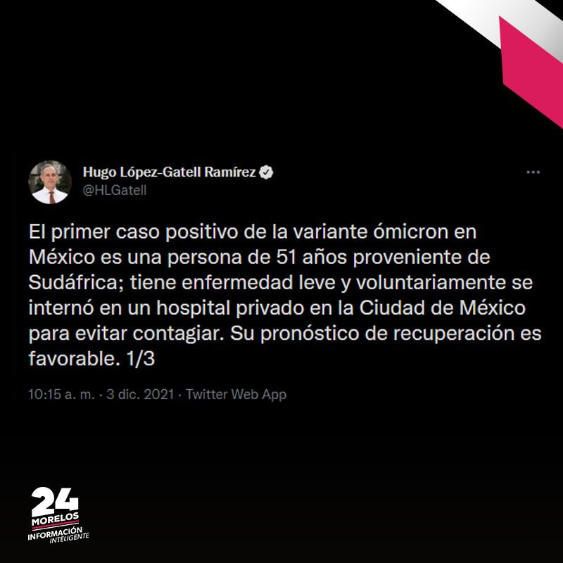 El subsecretario de Salud, Hugo López-Gatell, informó que ya está confirmado el primer caso de la variante Ómicron de COVID-19 en México.