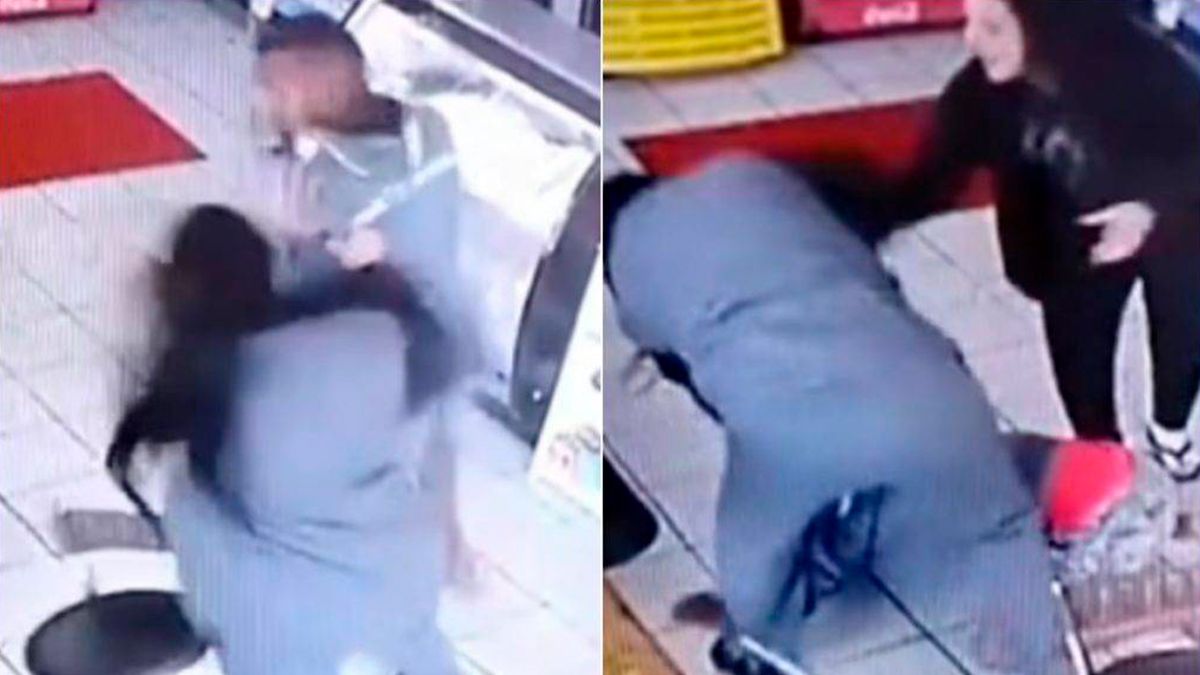 De acuerdo con la grabación, captada el pasado 15 de abril por una cámara de seguridad, la mujer se levantó de su silla y de inmediato confrontó al sujeto y comenzó a golpearlo con insistencia, tirándolo al suelo, hasta que otra mujer que estaba en el mostrador intenta separarla.