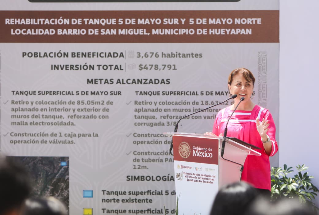 La gobernadora Margarita González Saravia inauguró la rehabilitación de los tanques “5 de Mayo Sur” y “5 de Mayo Norte”, ubicados en la calle 5 de Mayo, en el barrio San Miguel del municipio indígena de Hueyapan, así como la rehabilitación de la red de agua potable en la calle Isabel la Católica, en la misma comunidad.